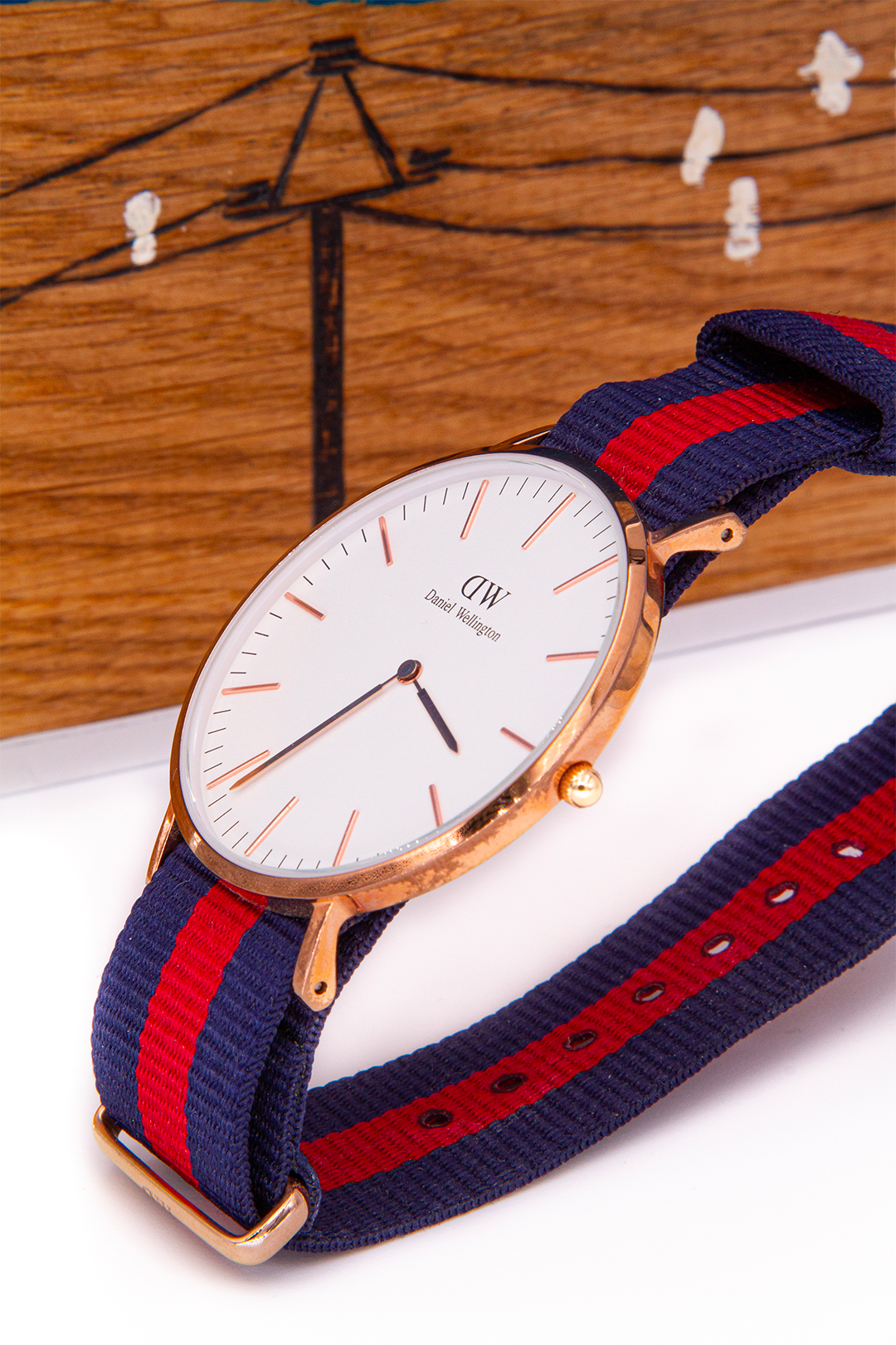 David FERREIRA, photographe professionnel avec lequel nous travaillons régulièrement, étant également un amateur de belles montres, il a pris plaisir à photographier sa propre montre Daniel Wellington munie du bracelet NATO Classic Oxford.