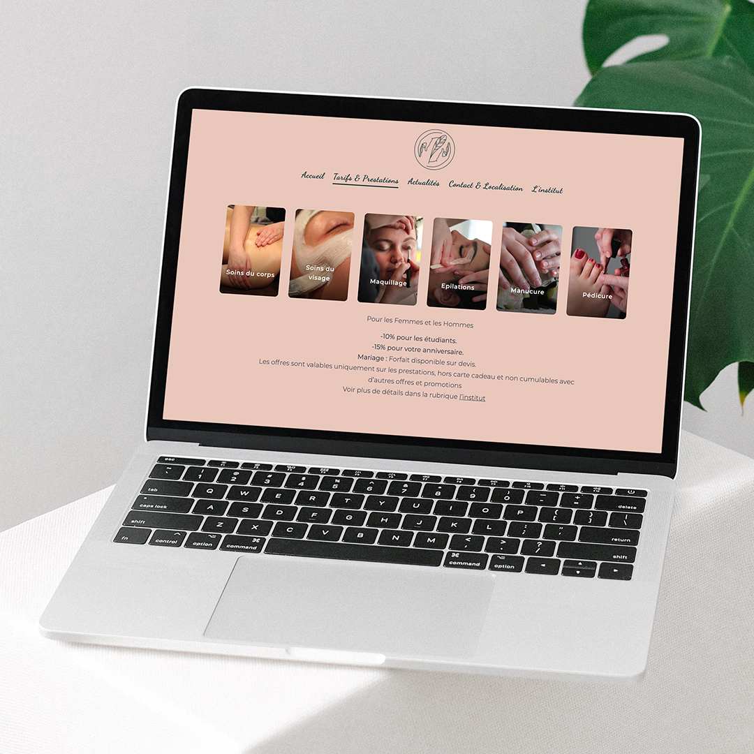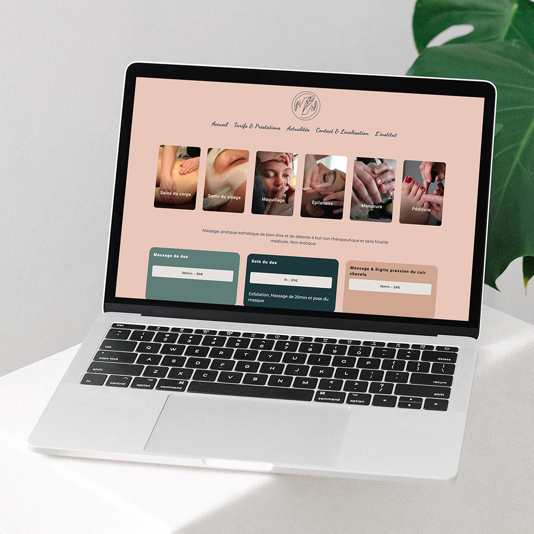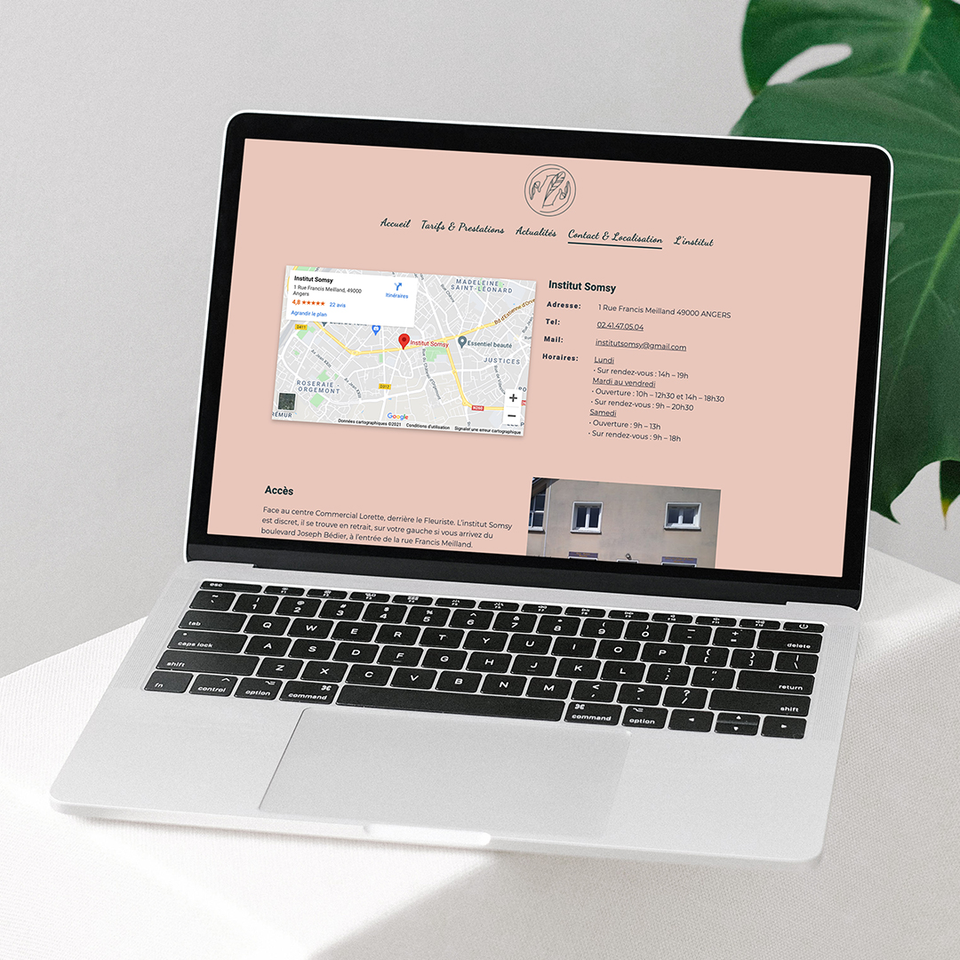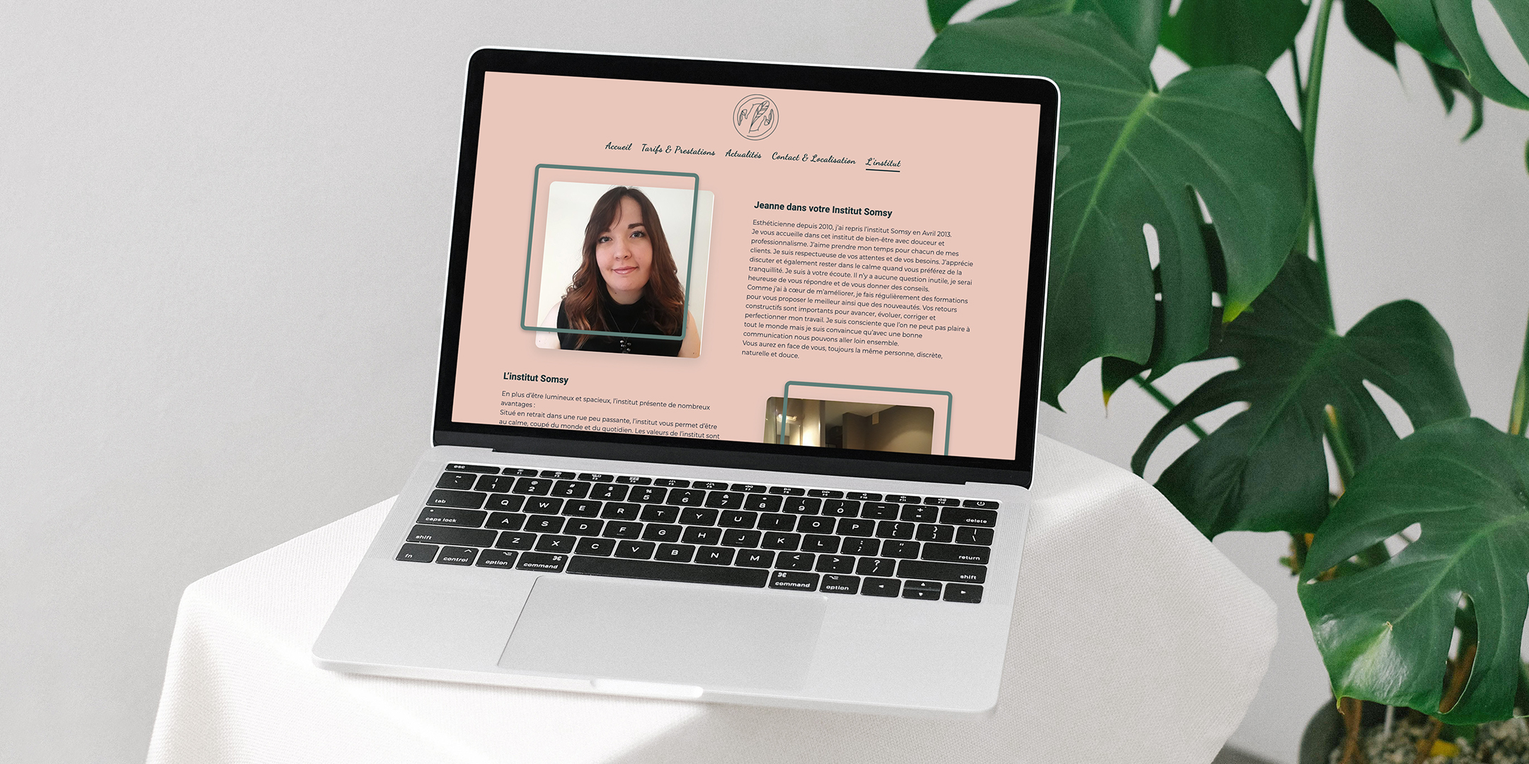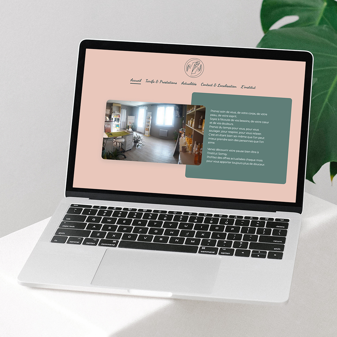 Le site internet a quant à lui été réalisé en WordPress, pour permettre à Jeanne de le mettre à jour facilement et en toute autonomie. Il présente les valeurs de l'Institut Somsy, ses informations pratiques ainsi que l'ensemble de ses prestations et des produits qu'elle utilise. Une page « Actualités » permet également à Jeanne de mettre en avant les promotions et autres actualités de l'institut.
