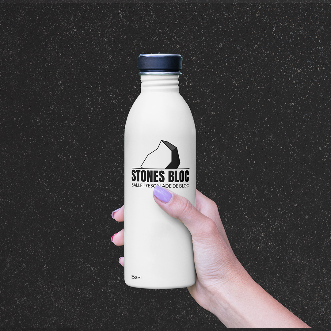 Le logo est composé d'une pierre aux angles pointus, avec le nom de la salle écrit en dessous. Le rocher représente un bloc d'escalade et n'est pas sans rappeler Fontainebleau aux connaisseurs ; il met en avant le côté « nature » de l'escalade, et également l'aspect « intérieur » du bloc, par ses lignes minimalistes. Il est soutenu par une typographie solide et massive qui montre la solidité de la roche et rappelle la force du grimpeur.